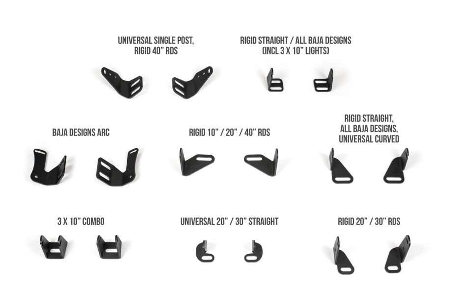 The Addictive Desert Designs Universal Light Mount Kit provides a flexible and durable solution for installing auxiliary lighting on trucks and SUVs equipped with compatible ADD bumpers. Designed to support a wide range of lighting setups, the kit allows users to mount LED light bars, cube lights, or other off-road lighting options from multiple manufacturers.