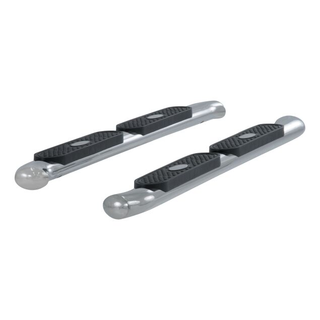 ARIES 4" oval side bars offer a finished look unlike any other nerf bars or side bars available. They feature 20° bent ends, seamlessly welded end caps, raised step pads for non-skid traction and a no-drill installation. These truck steps are available in two finish options.
