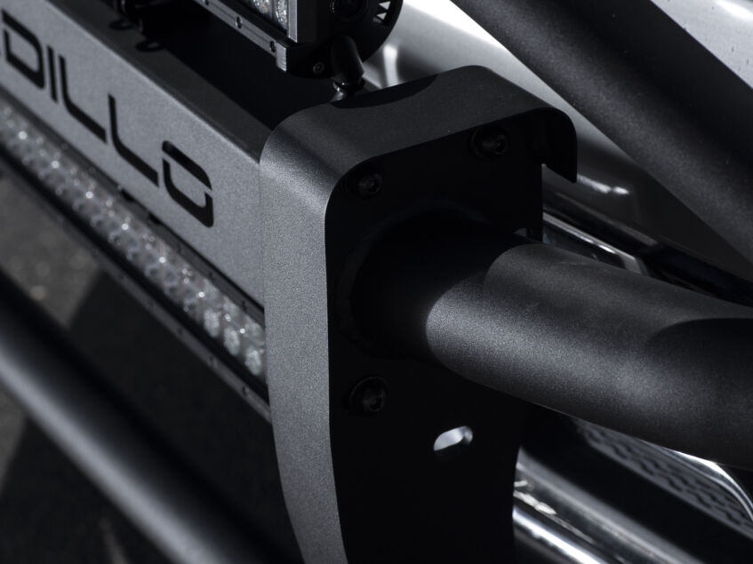 The Armordillo AR Pre-Runner Guard delivers bold styling and enhanced front-end protection for trucks and SUVs. Inspired by off-road racing designs, this guard adds an aggressive, high-clearance look while providing added defense against road debris and light trail obstacles.