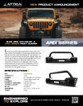 The Attica 4x4 Apex Series Front Stubby Bumper is built for maximum clearance, aggressive styling, and uncompromised trail performance. Its compact stubby design opens up your approach angle, giving you the maneuverability needed for technical off‑road terrain while maintaining a tough, modern look. Constructed from heavy‑duty materials and engineered for a precise fit, the Apex Series Stubby Bumper provides dependable front‑end protection without unnecessary bulk. With integrated mounting options and a bolt‑on installation, it’s the ideal upgrade for drivers who want capability, strength, and style in one streamlined package.