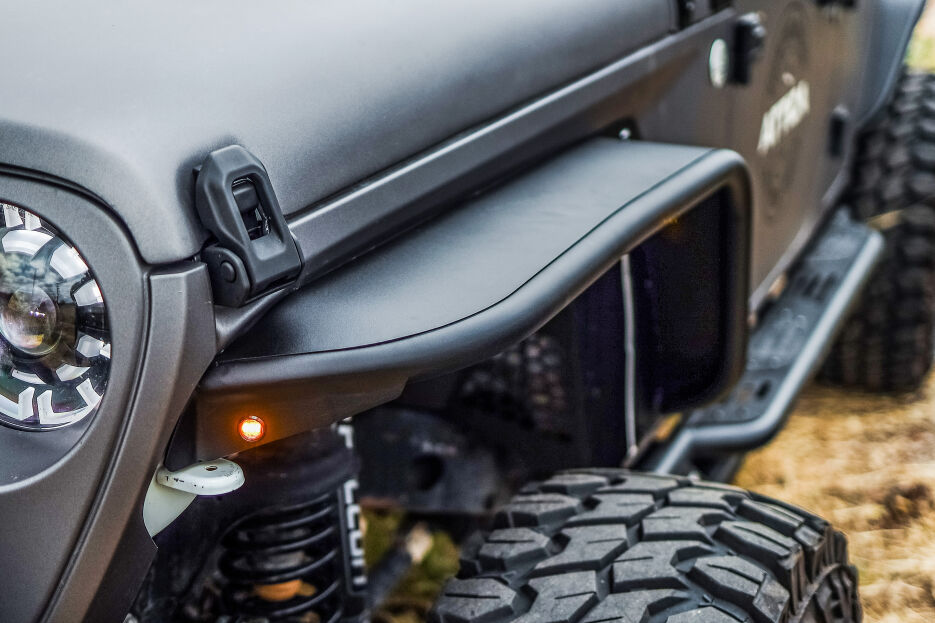 The Terra Series Front Fender Flares are the perfect addition for off-road enthusiasts. These flares are designed with characteristics that prioritize functionality, durability, and style. One of the most notable features of these flares is their high clearance design. This feature allows for larger tire sizes, which are essential for conquering rough terrain. The flares are also constructed from durable steel, which makes them sturdy enough to withstand the rigors of off-road driving. Installation of these flares is made easy with their bolt-on design, which eliminates the need for drilling or any other modifications. This means that you can install them quickly and easily, allowing you to spend more time on the trails. Whether you're climbing steep inclines, traversing rocky terrain, or crawling through mud, the Terra Series Front Fender Flares will keep your Jeep Wrangler JL protected and ready for adventure.