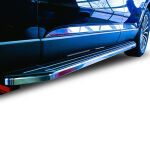 Constructed from heavy-duty aluminum with corrosion-resistant properties, these running boards provide long-lasting performance without adding excess weight. The addition of stainless steel trim accents elevates the overall design, giving your vehicle a polished, upscale look.