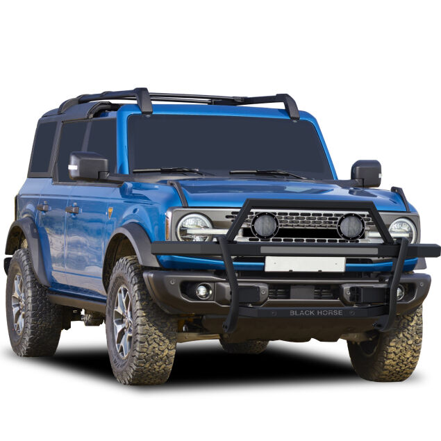 The Black Horse Rambler Grille Guard is a premium front-end protection system designed for drivers who need serious durability, modern styling, and functional lighting integration. Built with a unique plate-style front bar and reinforced steel construction, it delivers enhanced coverage compared to traditional grille guards.