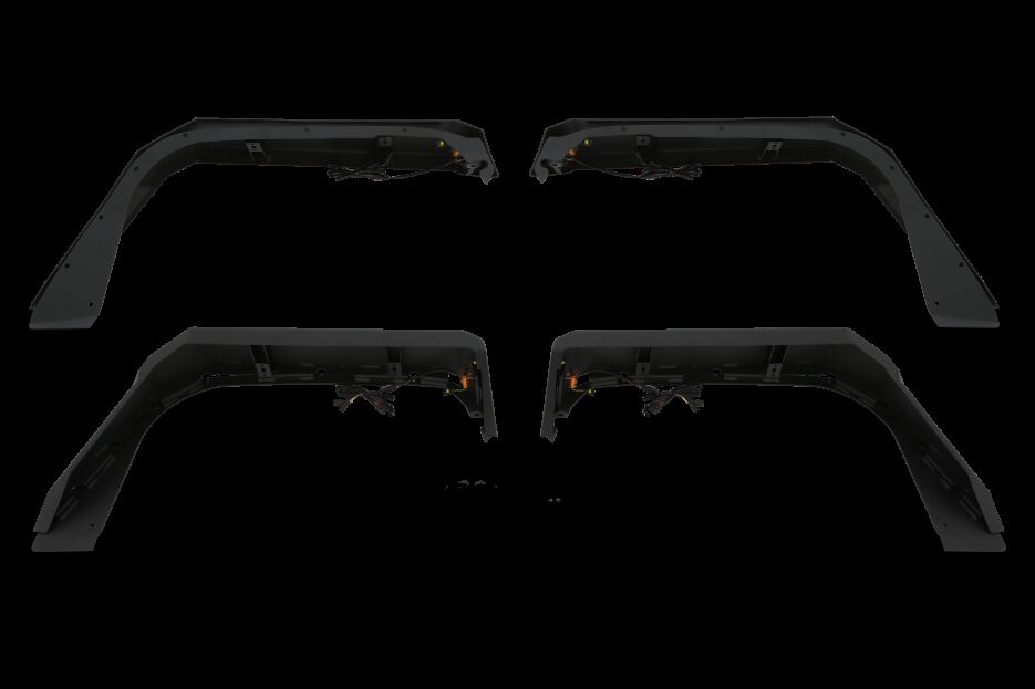Built from durable, impact‑resistant materials, the front fender flares are designed to withstand harsh trail conditions without compromising fit or finish. Their precision‑molded design follows the factory body lines for a clean, integrated look that enhances both function and appearance.