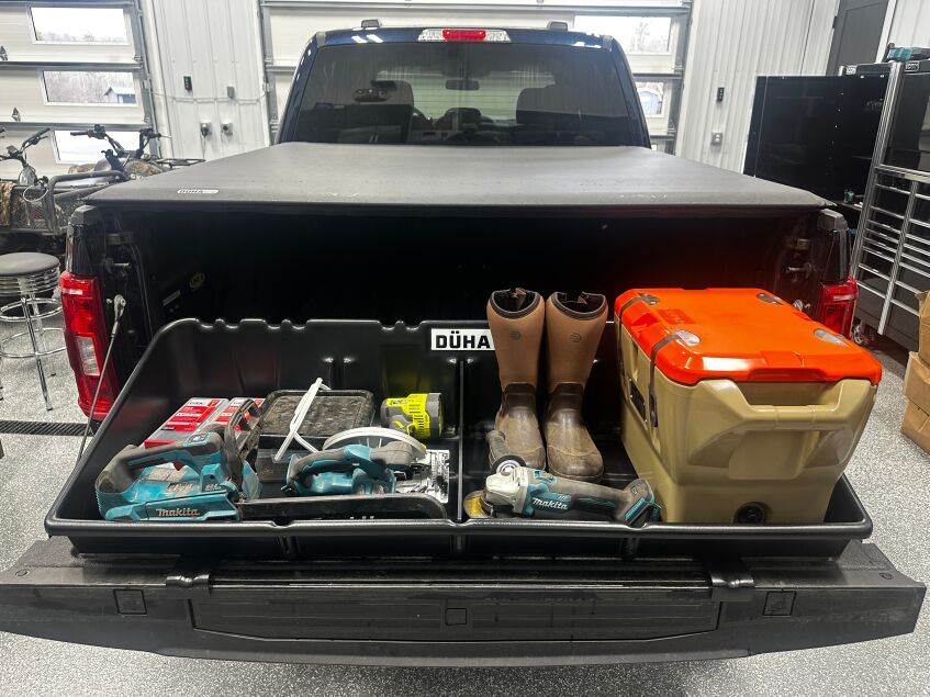 Easily keep everything at arm's reach without crawling under or rolling back your tonneau cover. The CargoStop™ prevents tools, smaller items, groceries, gas cans, and other gear from rolling around in your truck bed. The DÜHA CargoStop™ is the latest innovation in truck bed storage, designed to keep your gear secure and your truck bed organized. Whether you're a contractor, outdoor enthusiast, or simply someone who values a tidy truck bed, CargoStop™ is the perfect addition to your vehicle.
