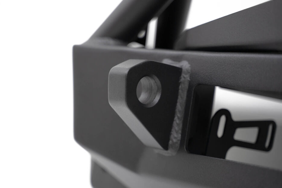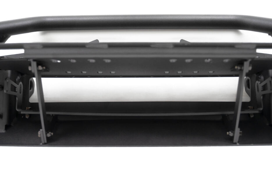 Additional features include a recessed winch mount, 1-inch thick D-ring mounts, and an integrated light bar mounting location. A tubular bull bar protects critical components while maintaining a clean, functional look. These features combine to create a well-rounded off-road solution built for recovery and visibility.