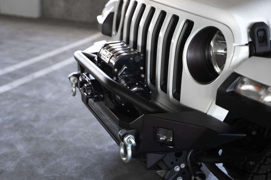 Design: Mid-width bumper with recessed winch tray and bull bar