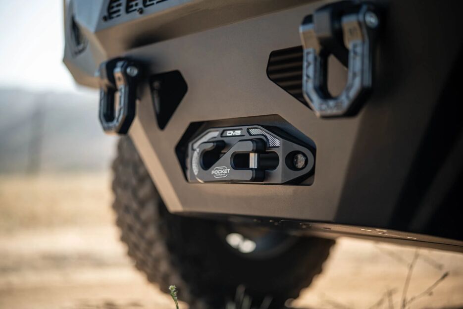 The compact pocket design provides a clean, low-profile appearance that integrates seamlessly with most aftermarket bumpers and winch mounts, making it a popular choice for modern off-road builds.