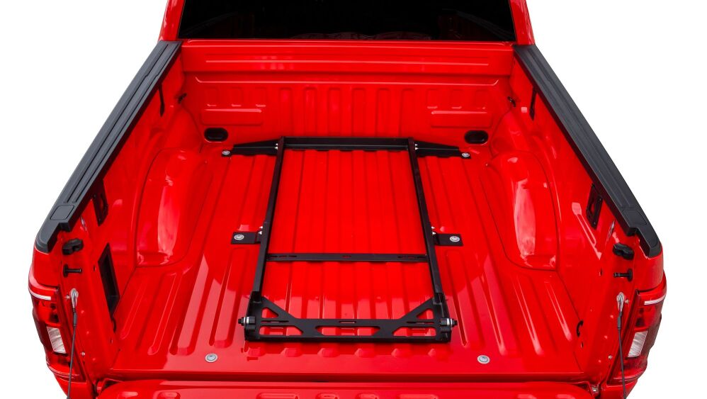 - Position the BEDSLIDE base so the front brackets align with the factory front tie-down mounting holes.