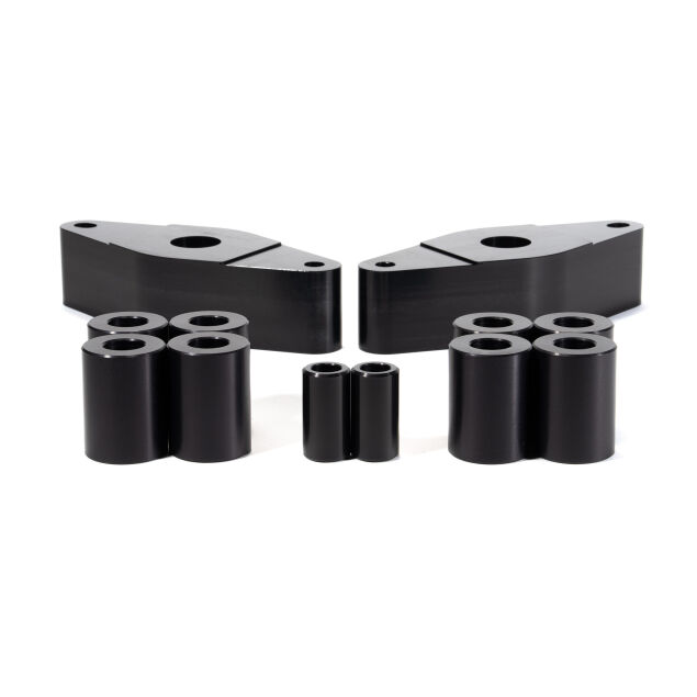 This kit includes precision-fit components engineered to handle the increased loads and structural demands of heavy-duty trucks used for towing, hauling, and commercial applications. By providing proper spacing and mounting support, the kit helps maintain stability, durability, and correct suspension geometry for air spring installations.