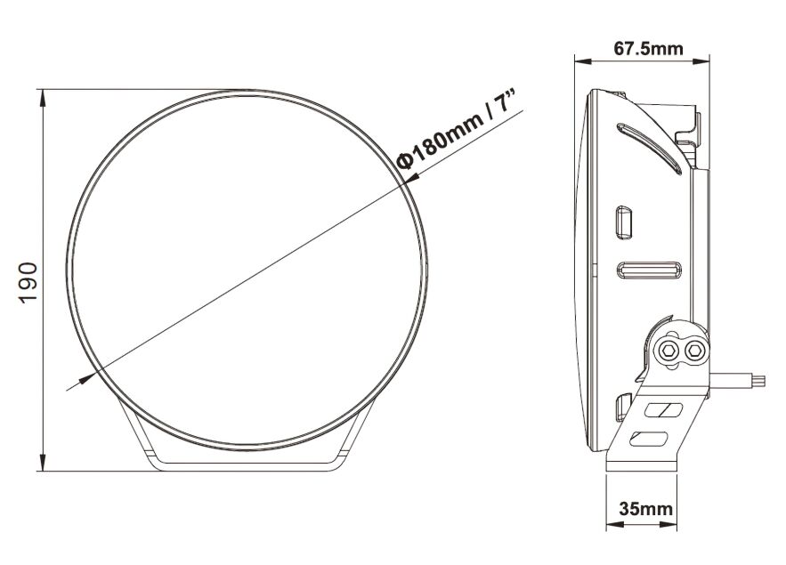The integrated LED marker lights feature both white and amber LEDs which can be used for parking lights, DRL, and/or turn signals. This multifunctional automotive spotlight is the perfect solution to your lighting needs. With an Ingress Protection Rating of IP68 and a heavy-duty blacked-out housing, this 7" spotlight is rugged enough to last through all of your adventures with an LED lifespan of 80,000+ hours.