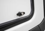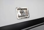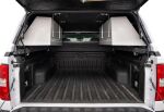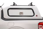 This customizable mid-rise commercial fiberglass cap offers 15% more cargo area than cab-high models. Standards include structural reinforcement for commercial roof racks, a fixed front window, 12-Volt fuse box, recessed dark tint rear door with double T-handles, and a recessed third brake light.