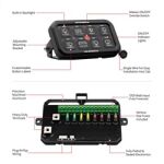 Additional features include customizable button labels, a master on/off switch, and configurable switch modes (toggle, momentary, or strobe). The RGB backlit panel improves nighttime usability while allowing you to match your interior lighting style.