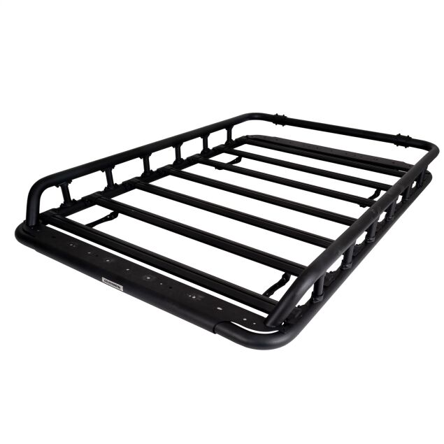 The flat platform design provides a large, open mounting surface, ideal for rooftop tents, cargo boxes, kayaks, and tools. The addition of rails creates a contained cargo area, helping secure gear and making tie-downs easier—especially useful for uneven or loose loads.