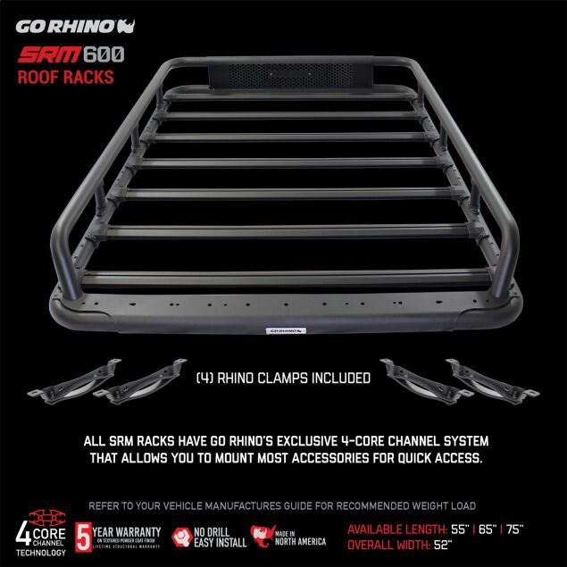 Available in multiple sizes (typically 55", 65", and 75" lengths), the SRM600 can be tailored to your vehicle and cargo needs. It’s compatible with Go Rhino mounting systems (sold separately), giving you flexibility in how you install it on your truck or SUV.