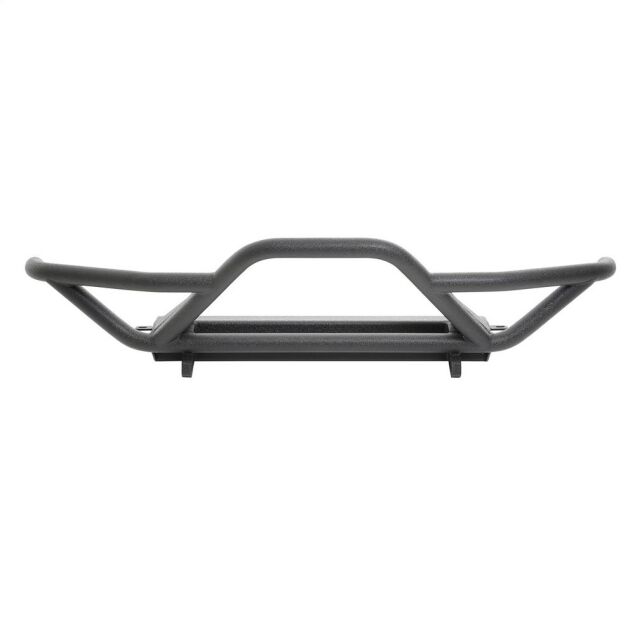 The Smittybilt Rock Crawler Series Front Bumper for 1987-2006 Jeep Wrangler YJ/TJ/LJ is built to handle the toughest off-road conditions. Constructed with durable 2" x .120" tubing and 1/4" steel plate, this bumper features welded D-ring mounts, light tabs, and is winch plate compatible for added functionality. Designed for easy, no-drill installation, its textured black finish and sloping ends provide enhanced tire travel and improved entry and exit angles, ensuring your Jeep is ready for any trail.