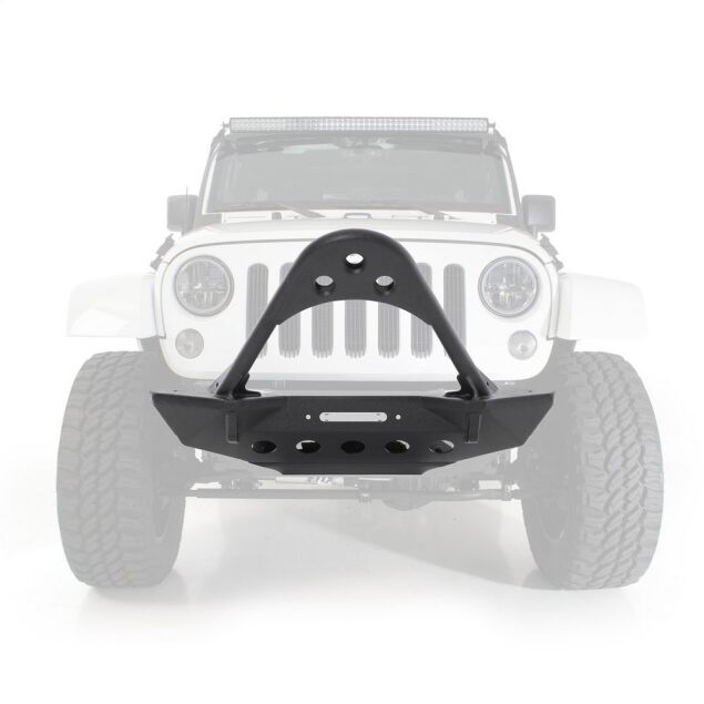 The Smittybilt Front Stinger for 1987-2018 Jeep Wrangler JK/JKU is designed to provide maximum ground clearance for enhanced approach and departure angles. Constructed from durable 2" DOM .120 steel tubing and 3/16" cold rolled steel, this stinger is built to withstand the most extreme off-road conditions. The D-ring mounts are welded both inside and out for added strength, though the D-rings are sold separately. It is compatible with most winch plates, making it a versatile addition to your Jeep. The stinger features a textured black finish and is backed by a Limited Lifetime Structural Warranty and a 5-Year Finish Warranty.