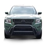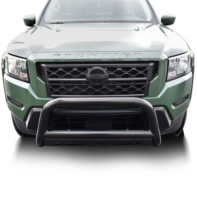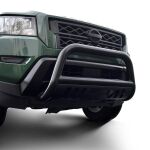 - Black bull bar comes with textured black skid plate