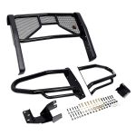 The HDX Grille Guard with a black powder coat finish is made from e-coated steel and comes with a 3 year warranty:
