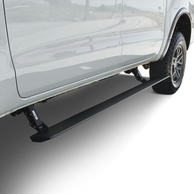 The Westin Pro-e Power Running Boards add both style and convenience to your truck, Jeep, Bronco, or SUV. Designed to automatically extend when you open the door and retract when closed, they make getting in and out easier while keeping a sleek look. Built tough with aluminum construction, waterproof motors, and LED lighting, these boards are ready for any condition.